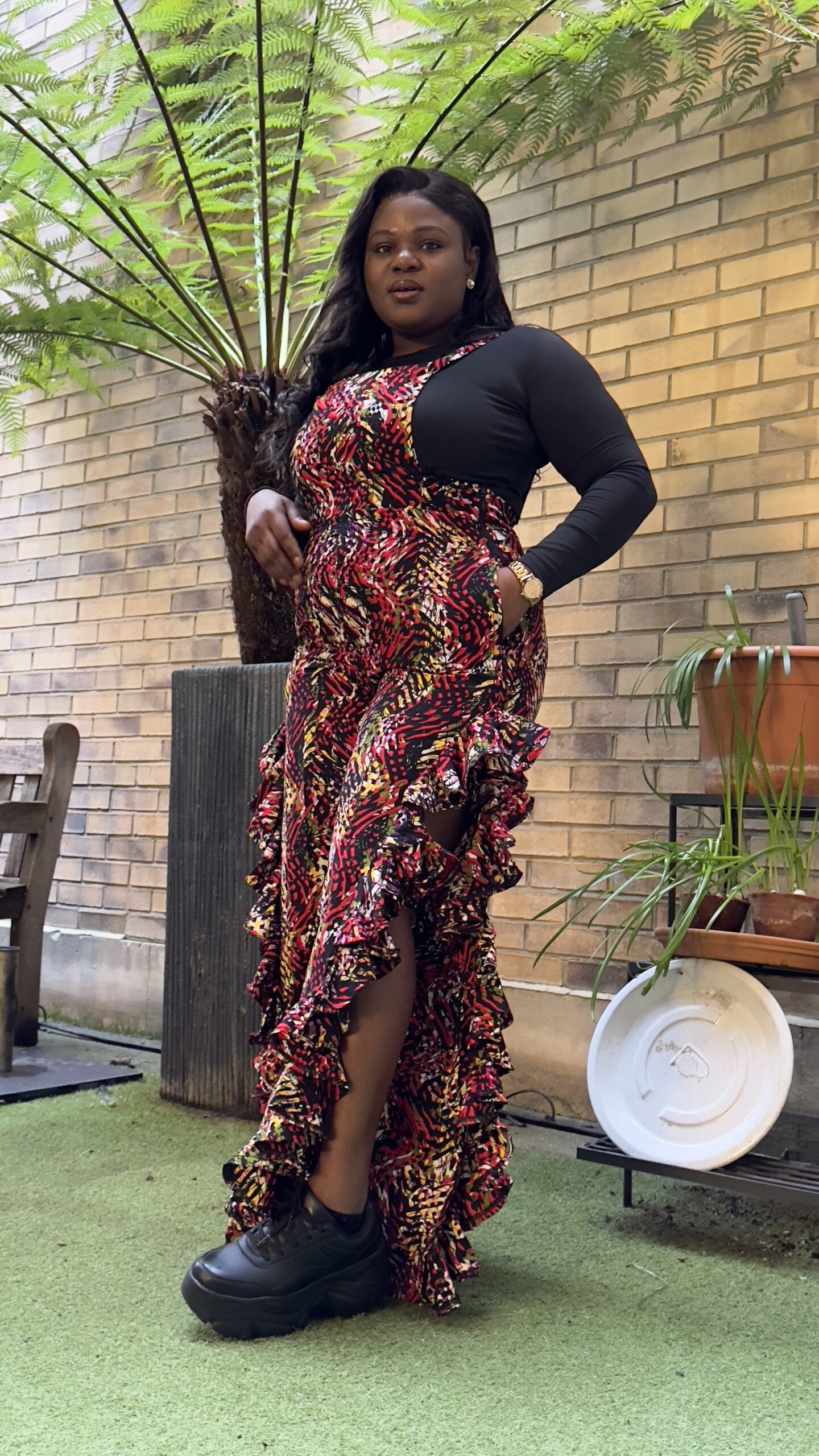 - Bold Pattern: The eye-catching red, yellow, and black print brings a bright, energetic feel to any occasion.